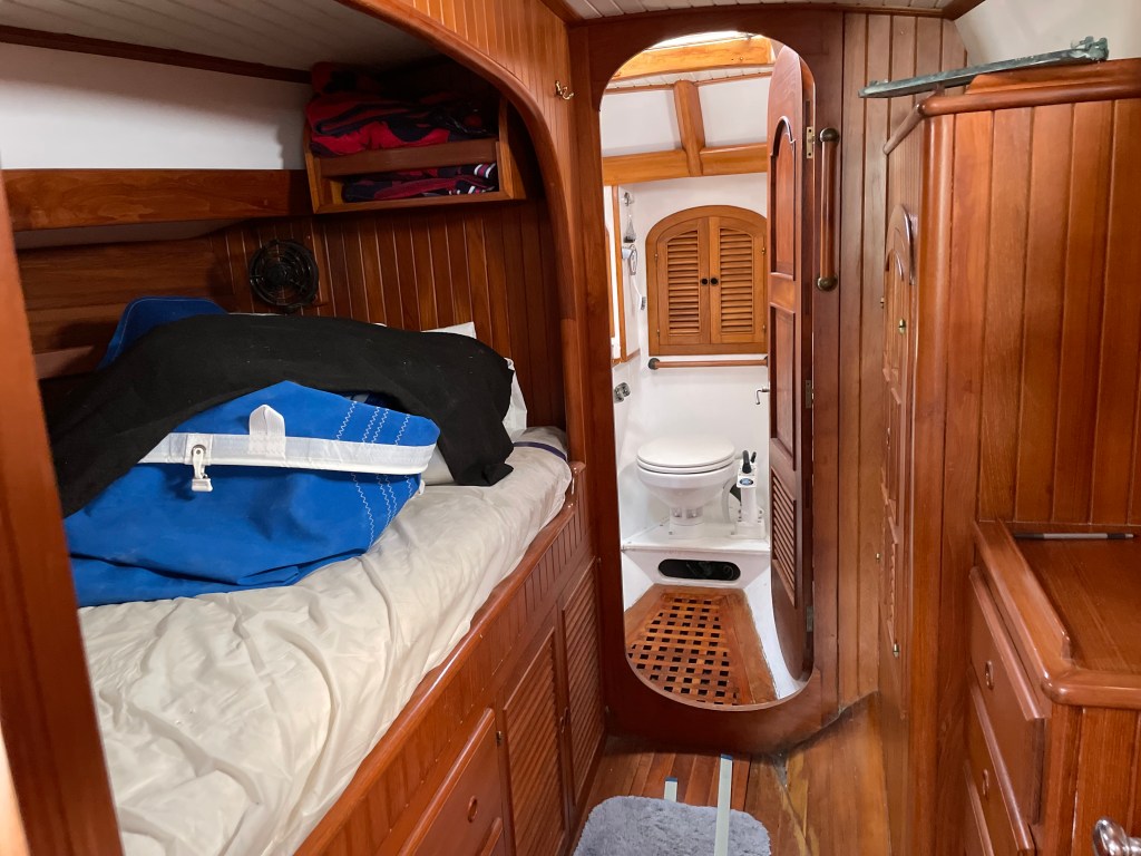 I had narrowed it down to two possibilities. One had been on the hard for more than five years with the bunk in the forepeak and the second had mostly been in the water for the same amount of time but had a recent survey. The second was the pullman berth. In the end I bought the latter. She was built in 1982.